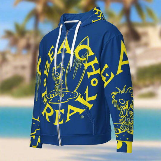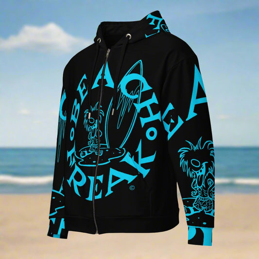NEON BLUE BEACH FREAK SPLASH'D© ZIP-UP HOODIE