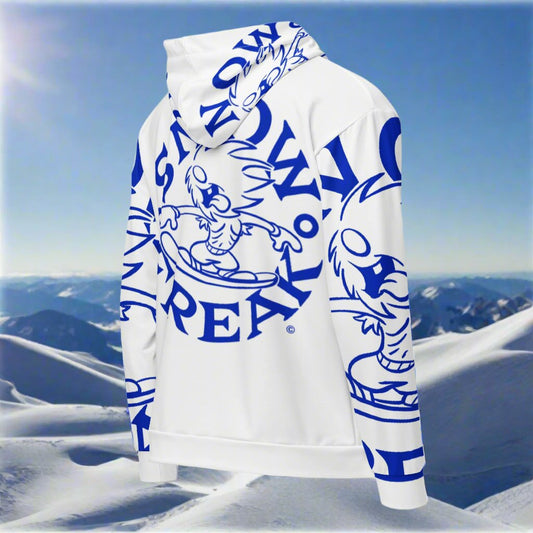 NEON BLUE & WHITE SNOW FREAK© SPLASH'D© ZIP-UP HOODIE