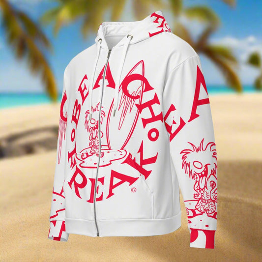 NEON RED BEACH FREAK SPLASH'D© ZIP-UP HOODIE